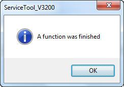 Das Tool bestätigt den Reset kurz drauf mit der Meldung "A function was finished". Schließen Sie die Meldung durch einen Klick auf OK.