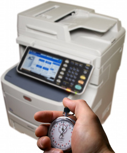 Um zu überprüfen, wie schnell der Oki MC760dnfax Texte zu Papier bringt, schickt Druckerchannel zwei verschiedene Testdokumente zum Gerät und misst die Zeit mit einer Stoppuhr.