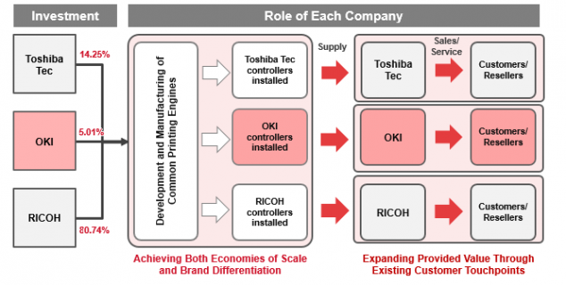 Von Oki verspricht sich das Joint-Venture weitere Kapazitäten bei der Entwicklung von Motoren und dem Mechanismus von Druckern. Erwähnt wird dabei auch die von Oki vorangetriebene Technologie der Belichtung über eine LED-Zeile anstatt des zumeist verwendeten Lasers. Auch der japanische Mitbewerber Brother als weltweite Nummer vier verwendet LED-Bildtrommeln für viele Farbgeräte.